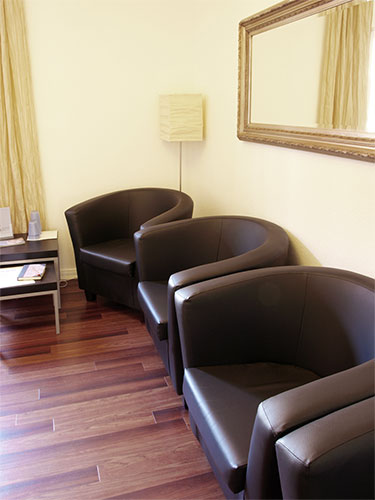 Relaxen Sie und genießen Sie einen Moment der Ruhe. Fernab von der üblichen Bestuhlung können Sie bei uns auf entspannenden und bequemen Sesseln Platz nehmen. Ein ruhiges und edles Ambiente sorgt für eine wohnliche Atmosphäre, und für die jüngsten Patienten gibt es einen kleinen Spielbereich.